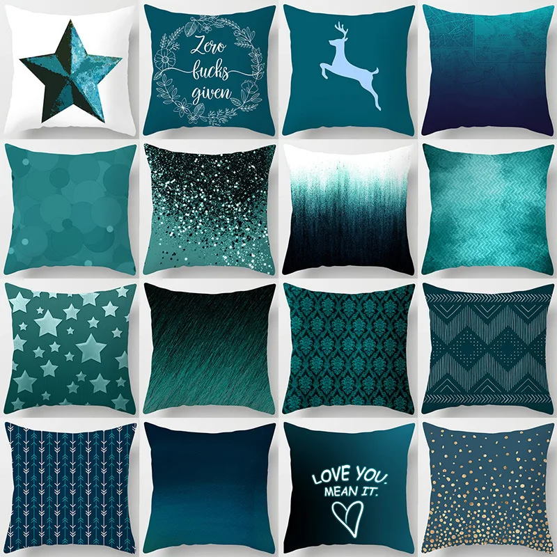 Простой сине-зеленый чехол для подушки, мягкий чехол для дивана, сп...