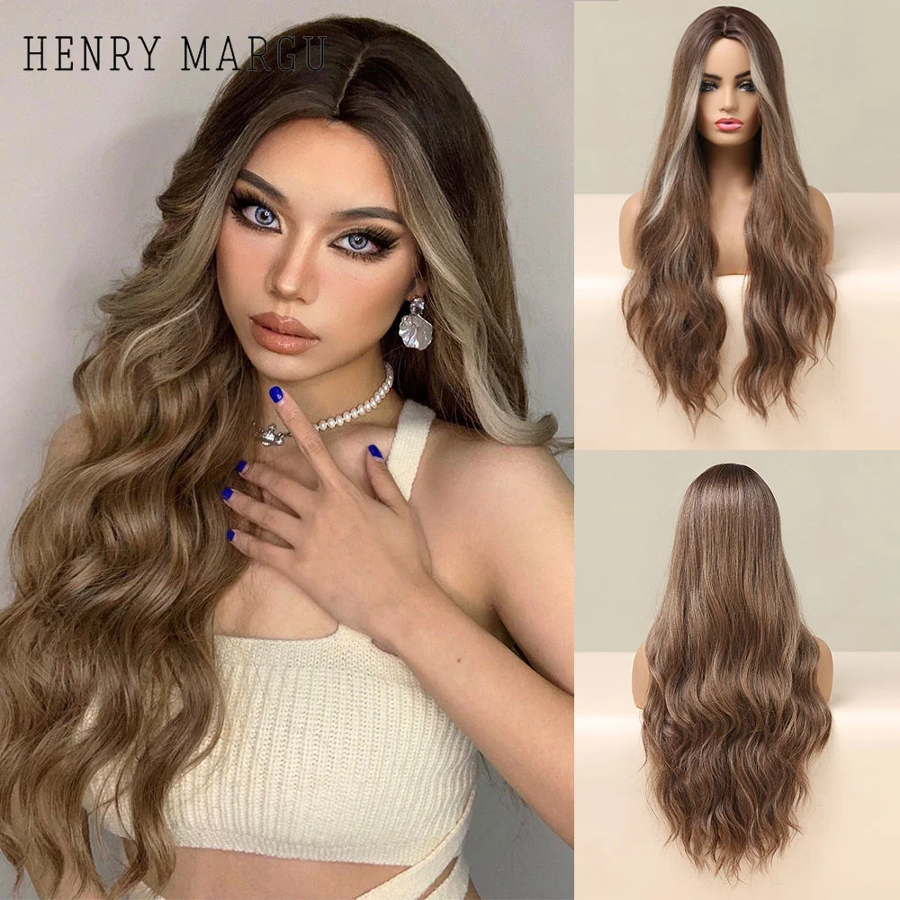 Женские длинные волнистые парики henmargu, коричневые, Платиновые, ...