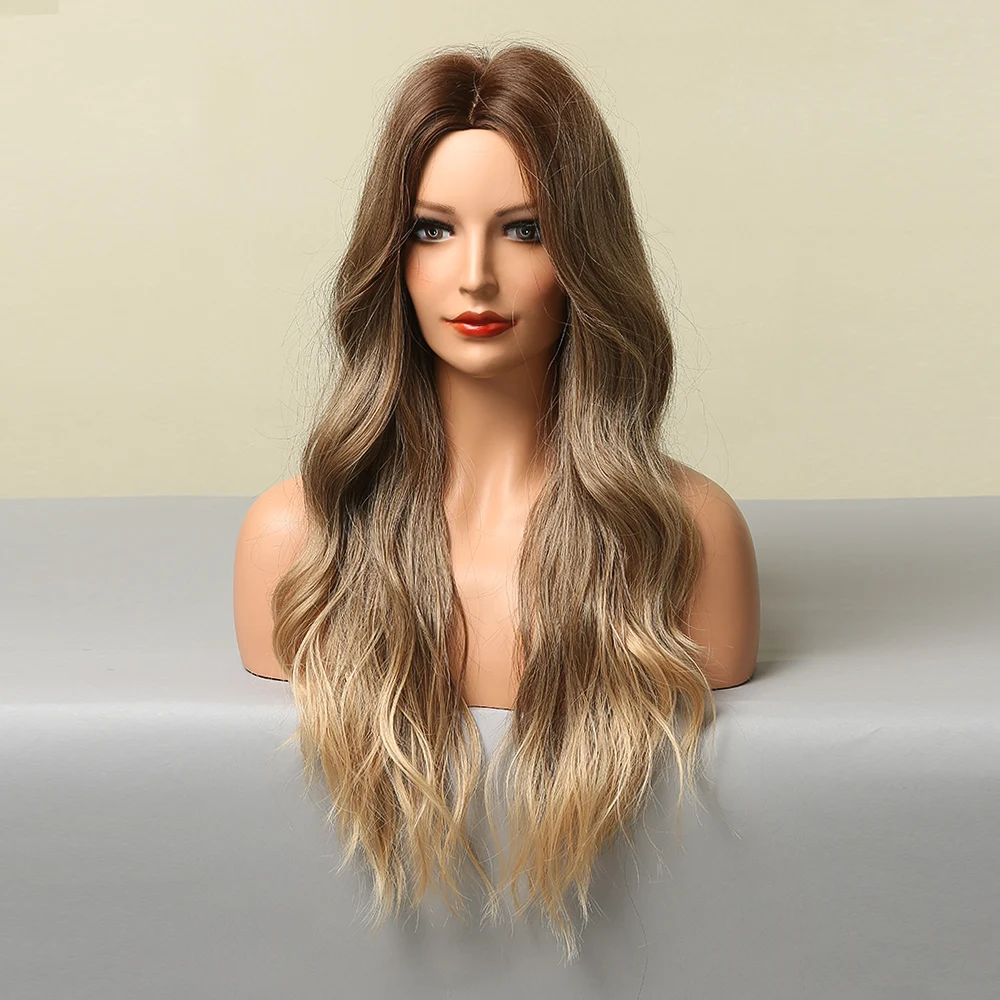 Длинный синтетический парик с эффектом омбре, коричневый, золотистый, светлый, средней части, волнистый, для ежедневного косплея, парик для чернокожих женщин из термостойкого волокна