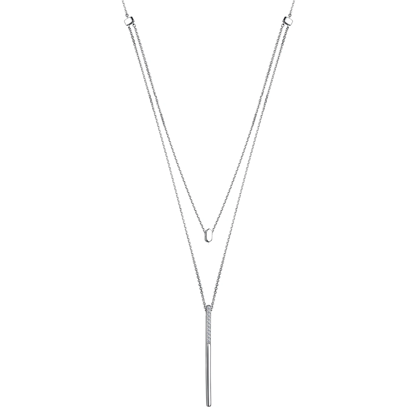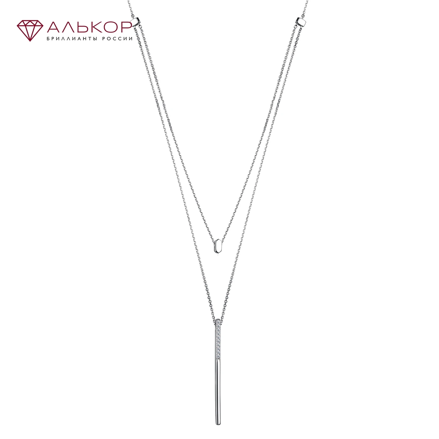 Женское колье на цепочке АЛЬКОР из родированного серебра 925 пробы с 10 фианитами. Ширина изделия: 2,7 мм. Средний вес: 4,15 гр.