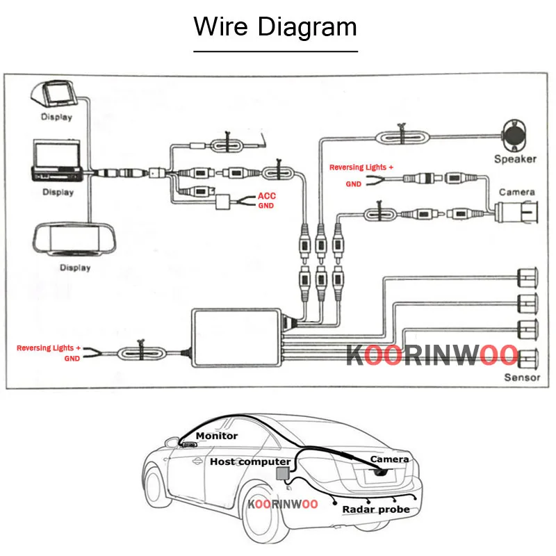Парктроник Koorinwoo, оригинальная камера заднего вида с 4 датчикам...