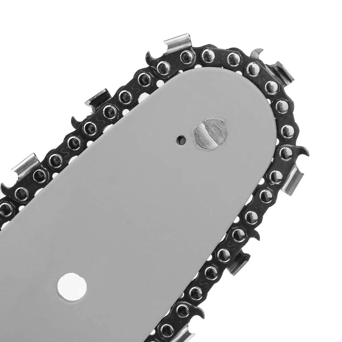 Характеристика:-Эргономичная ручка, которая очень удобна и безопасна для переноски.-Ручка имеет противоскользящий дизайн, который очень удобен для захвата.-Безопасность пилы, эффективно повышает эффективность вашей работы.-Бесступенчатая скорость, более детальная обрезка, лучшая защита деревьев.-Цепи пилы закаливают, закаляют и отжигают. Они долговечны, чем обычные цепи пилы.