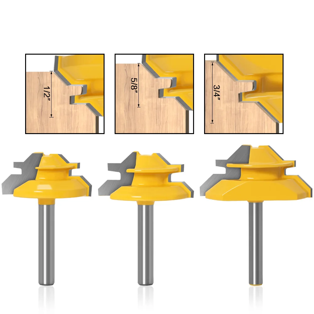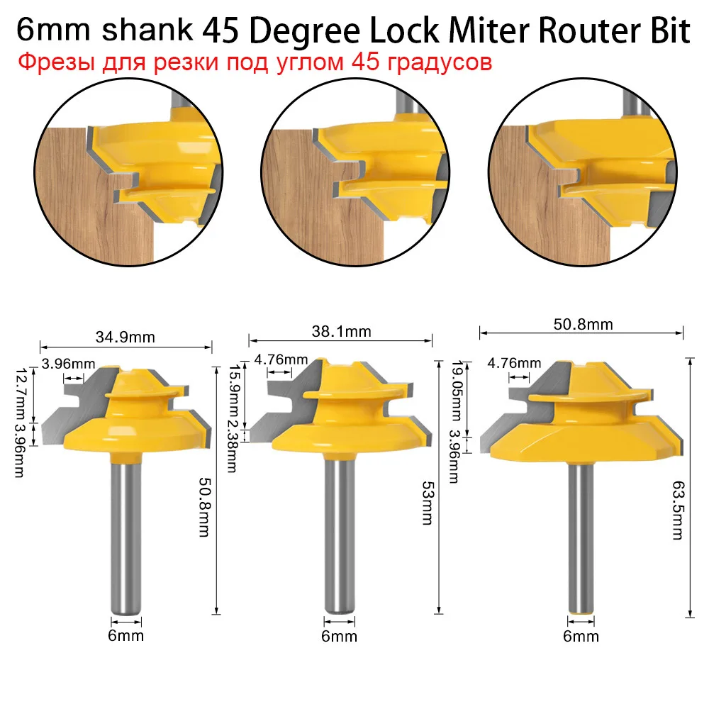 FGEDCS 1 шт. или 3 шт. набор карбида вольфрама 45 градусов Блокировка торцовочный фреза 6 мм 1/4 "хвостовик фреза по дереву для соединения шип-паз фреза Инструменты сверление фрезерный станок для дерева