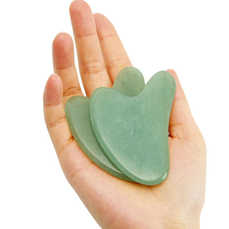 Скребок гуаша из натурального розового нефрита для лица и тела