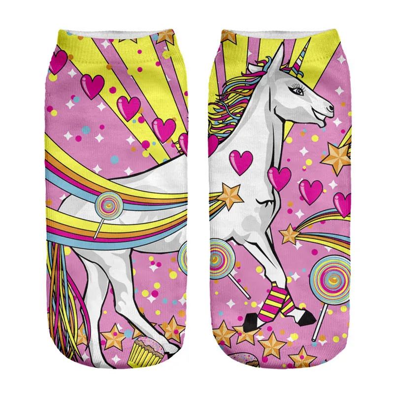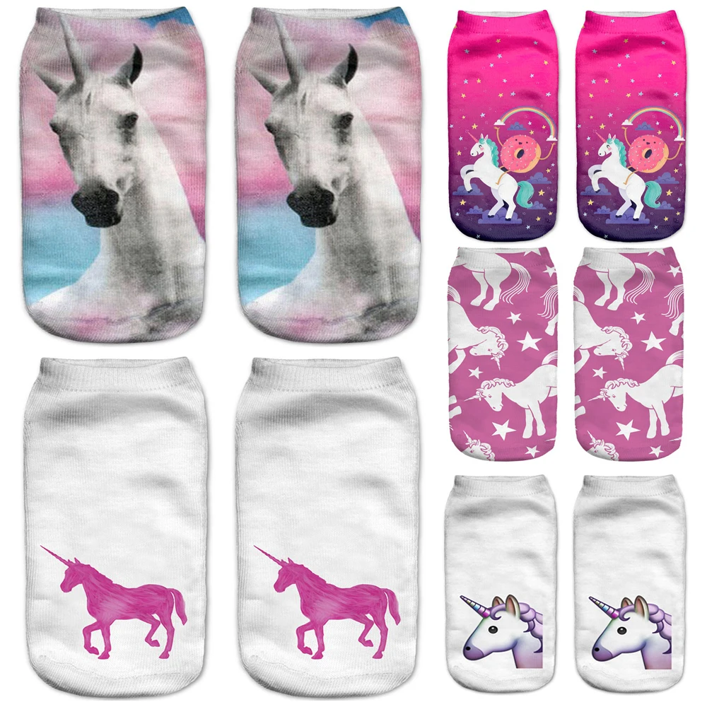Популярные женские 3D Носки с рисунком весна лето Харадзюку Лошадь Единорог 2 мужской бренд Модные женские забавные повседневные женские полуботинки