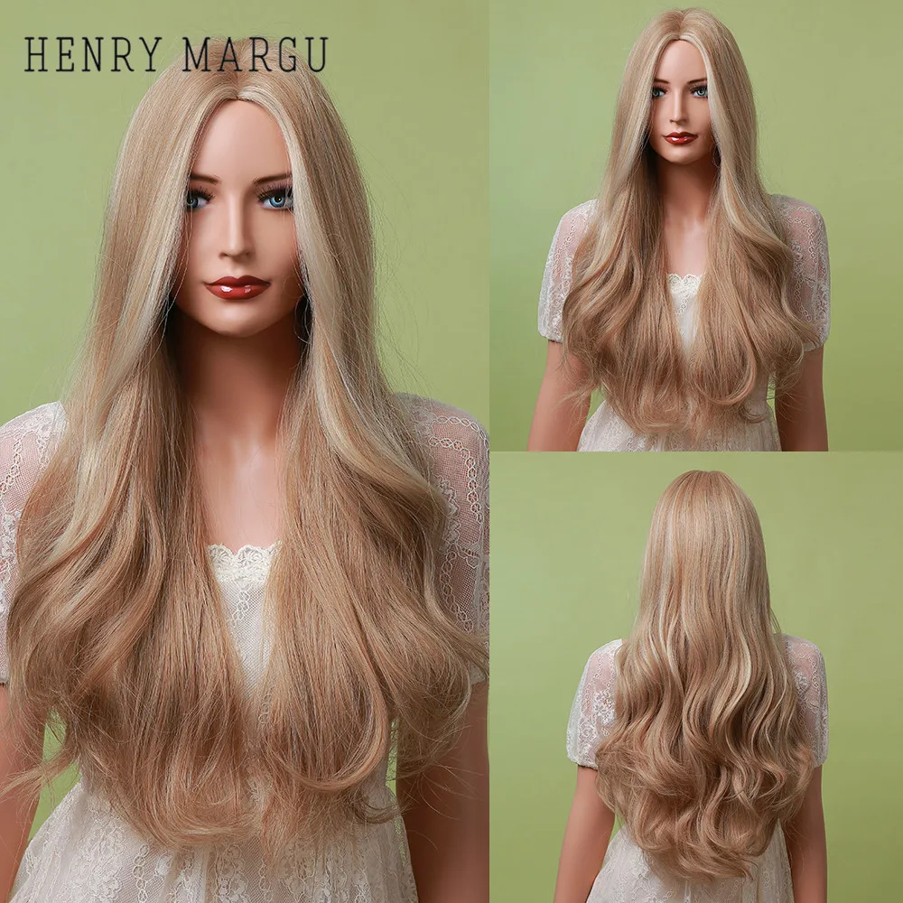 Парики из искусственных волос для косплея Анри маргу, длинные волнистые, Омбре, коричневые, светлые, синтетические, для женщин, повседневные, вечерние, средняя часть, термостойкие накладные волосы