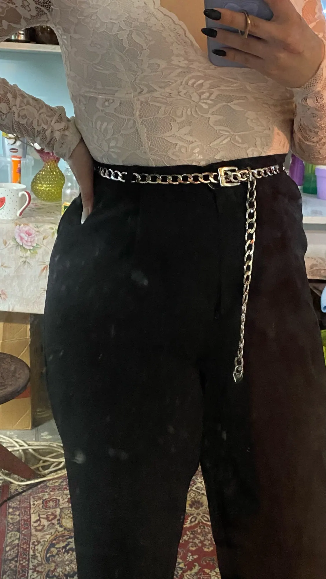 Элегантный пояс-цепочка. Отлично смотрится на темных штанах. Вы можете либо затянуть узкую талию, либо повесить на широкие бедра. Стоит дешево, но выглядит красиво. Я очень доволен, я хочу заказать больше!