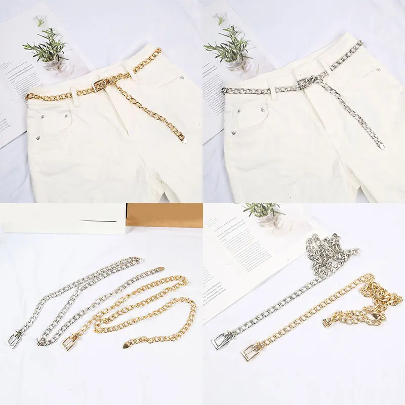 Ремень с металлической цепочкой для женщин, крутой модный пояс золотого Серебряная цепочка на талию для платьев и джинсов, аксессуар, цепочка для тела
