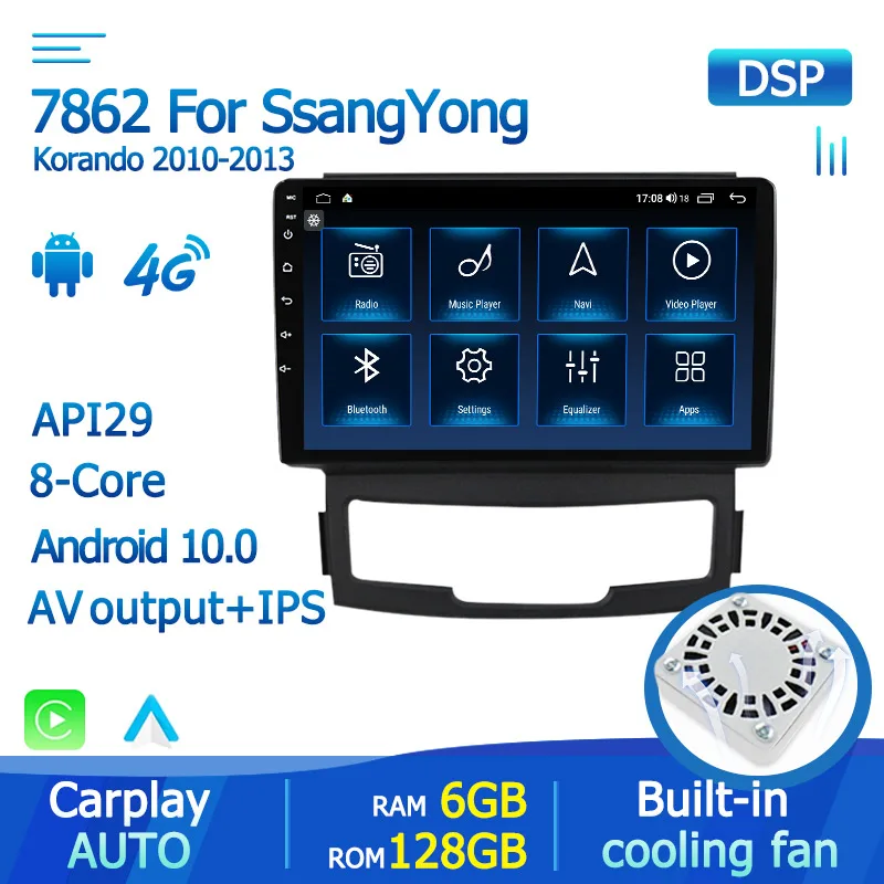 Автомагнитола 8 ядер, Android 10,0, для SsangYong Korando 2010, 2011, 2012, 2013, GPS, поддержка рулевого колеса