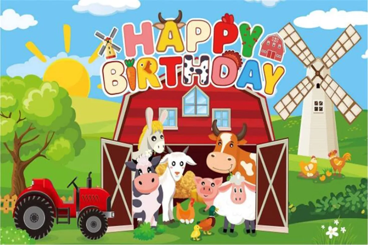Декоративный фон для фотосъемки с изображением животных из фермы С Днем Рождения