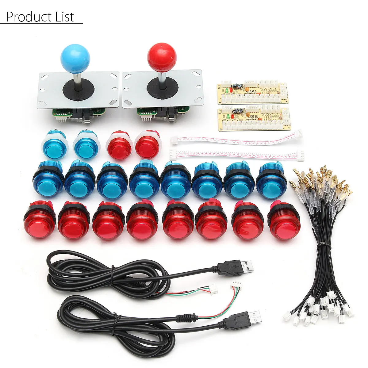 Набор игровых деталей для ПК, 48 шт. в 1, 20 светодиодных аркадных кнопок, 2 джойстика, 2 USB-Энкодера
