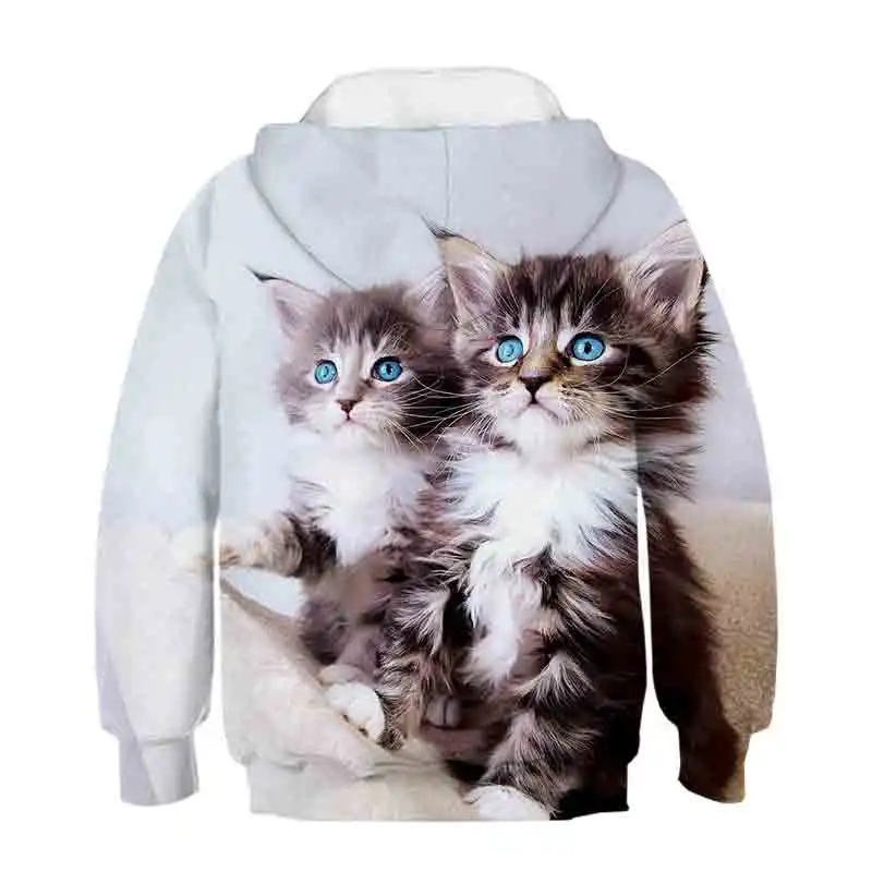 Толстовка с 3D рисунком кота, детские толстовки для мальчиков и дев...