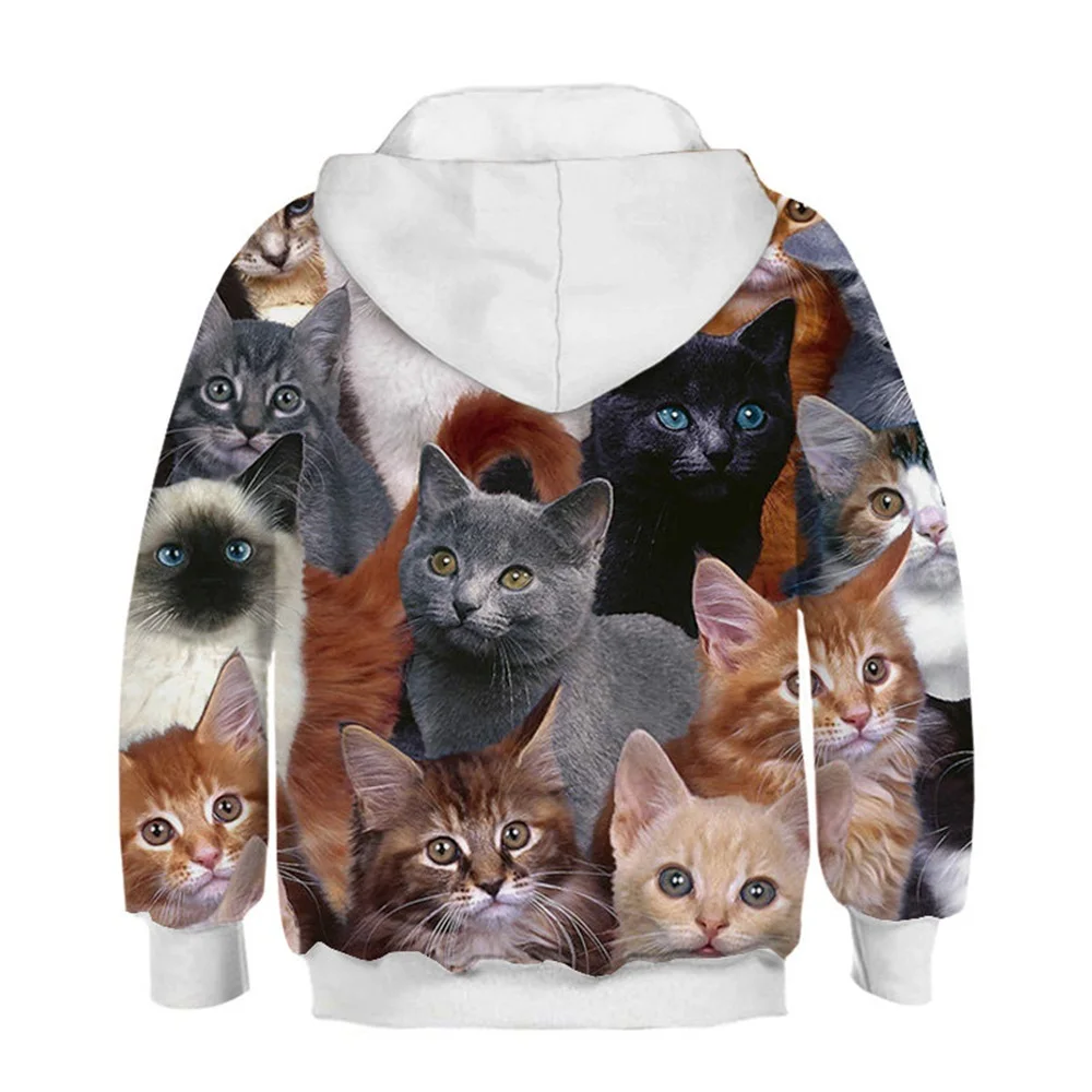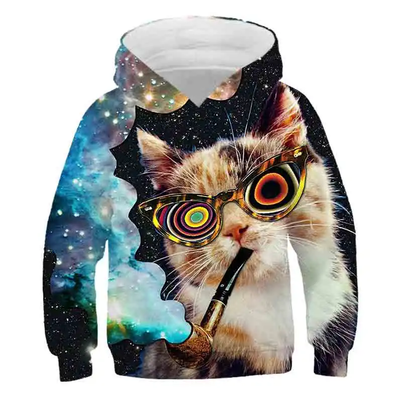Детская толстовка с капюшоном, толстовка с милым котом и животным для мальчиков и девочек, топы с 3D принтом, модная крутая детская одежда с длинным рукавом