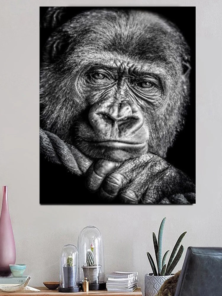 Черно-белая Горилла 5D Diy Алмазная вышивка полностью квадратная круглая дрель Алмазная картина обезьяна мозаика наклейки для рукоделия