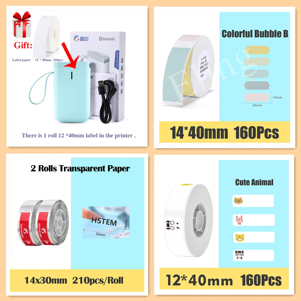 Беспроводной принтер для бирок Nimbot d11, карманные этикетки, bluetooth принтер для термопечати этикеток (зеленый принтер и 4 рулона этикеток)