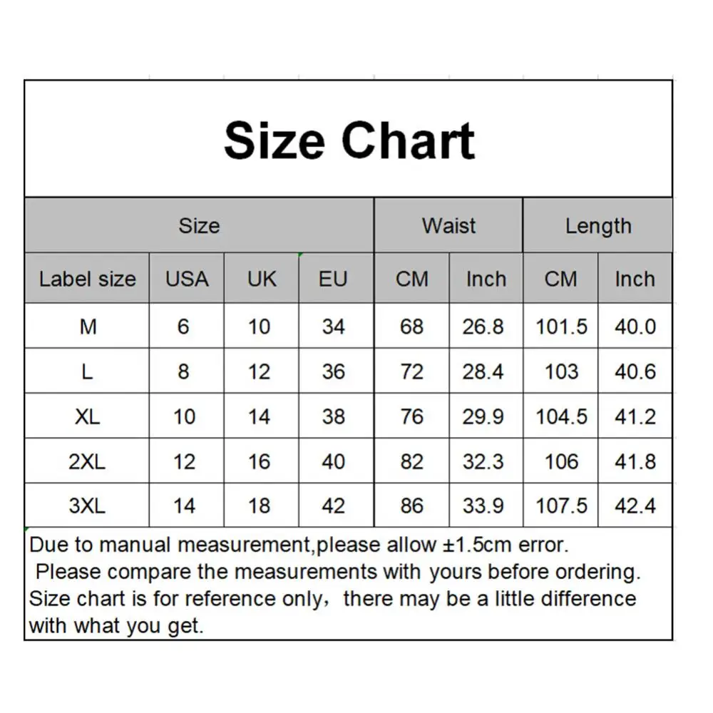 Мужские повседневные однотонные мешковатые брюки для танца живота, йоги, шаровары, слаксы Спецификация:Простые однотонные шаровары, повседневные и стильные, легко сочетаются с топами.Подходит для йоги, танца живота, повседневной одежды и т. д.Изготовлен из высококачественного материала, мягкий и удобный в носке.Тип: шароварыПол: женскиеТип размера: ОбычныйМатериал: нейлон, полиэстер, спандексУход За Одеждой: ручная стиркаСтиль: ПовседневныйСлучаи: спорт, фитнес, Йога, танец живота, повседневная одеждаОсобенности: однотонный, эластичный пояс, мешковатый, удобный Размеры:[Наш Размер M] Длина: 101,5 см/39,96 дюйма, талия: 68 см/26,77 дюйма (прибл.)[Наш Размер L] длина: 103 см/40,55 дюйма, талия: 72 см/28,35 дюйма (прибл.)[Наш Размер XL] Длина: 104,5 см/41,14 дюйма, талия: 76 см/29,92 дюйма (прибл.)[Наш Размер 2XL] Длина: 106 см/41,73 дюйма, талия: 82 см/32,28 дюйма (прибл.)[Наш Размер 3XL] Длина: 107,5 см/42,32 дюйма, талия: 86 см/33,86 дюйма (прибл.) Примечания:Пожалуйста, обратитесь к нашей таблице размеров и выберите правильный размер.Из-за разницы в освещении и настройках экрана цвет изделия может немного отличаться от изображения. Посылка входит:1 шаровары