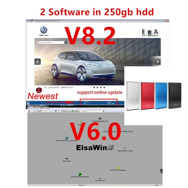 Лидер продаж 2021 Elsawin v6.0 с электронным каталогом запчастей E T K 250 для VW + AUDI + SE AT + SKO DA программное обеспечение для ремонта автомобиля на жестком диске ГБ