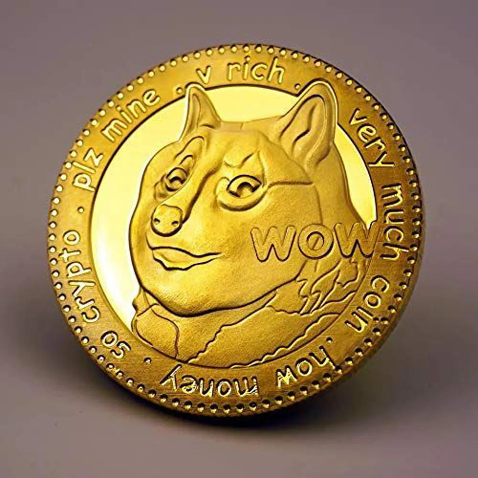 Золотые памятные монеты Dogecoin, с рисунком собаки, сувенир в виде собаки монета