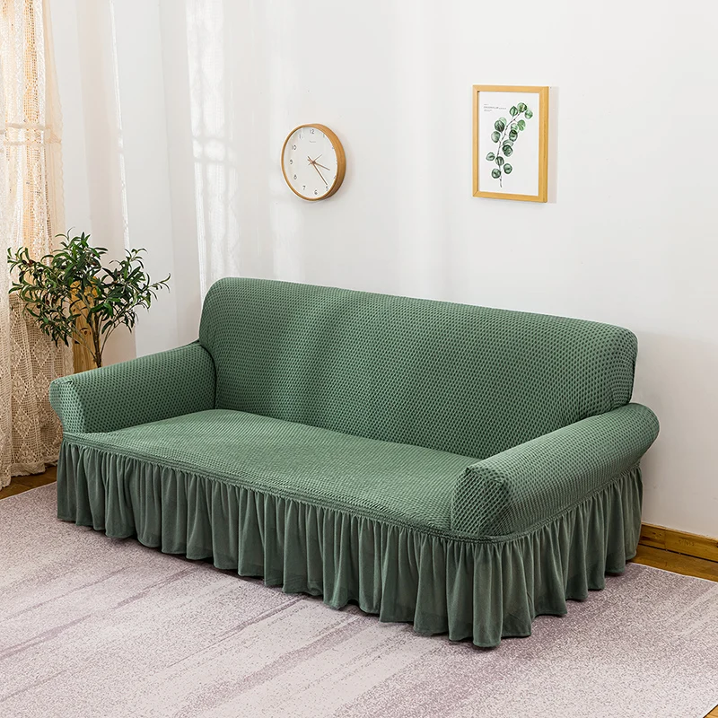 Турецкий высококачественный однотонный чехол для дивана, маленький квадратный чехол для дивана с юбкой для гостиной, эластичный чехол для дивана на 1-4 места