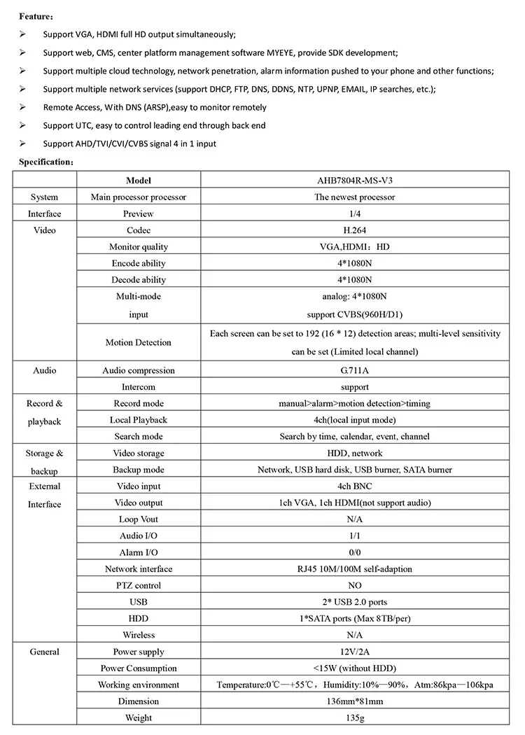 Страна: HR Build-in HDD: None Video Input: 4CH Ships From: CN Доставка: Standard Shipping 28.07.2021