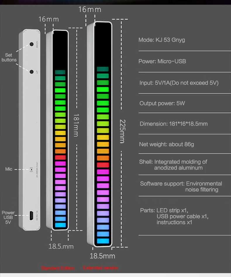 Микрофон Голосовое управление аудио уровень светильник бар цвет RGB...