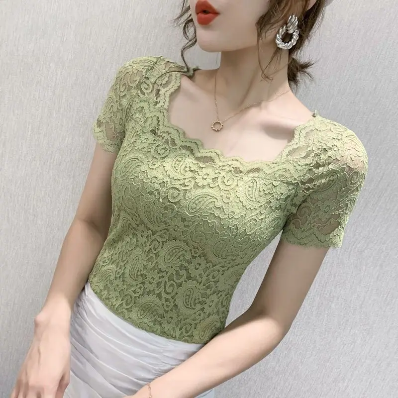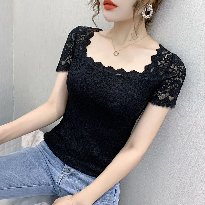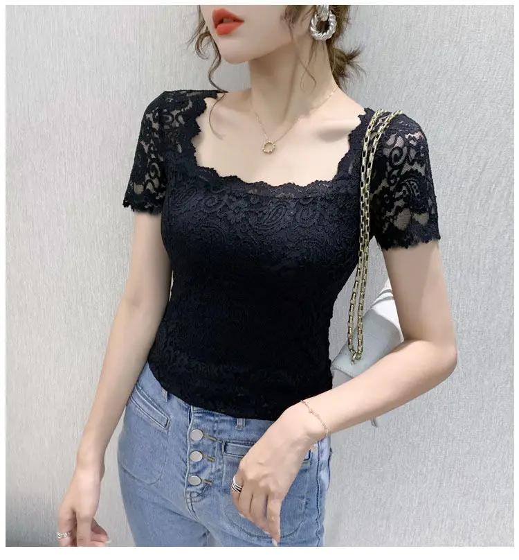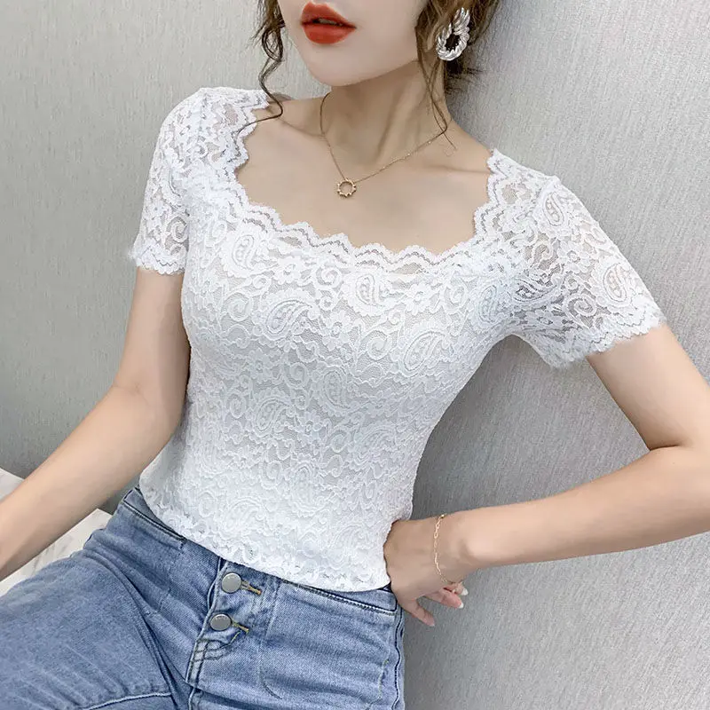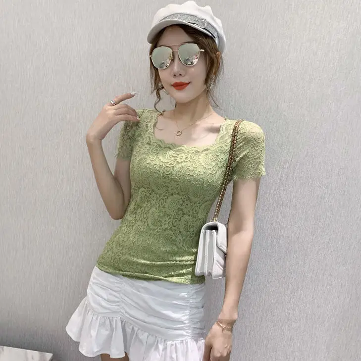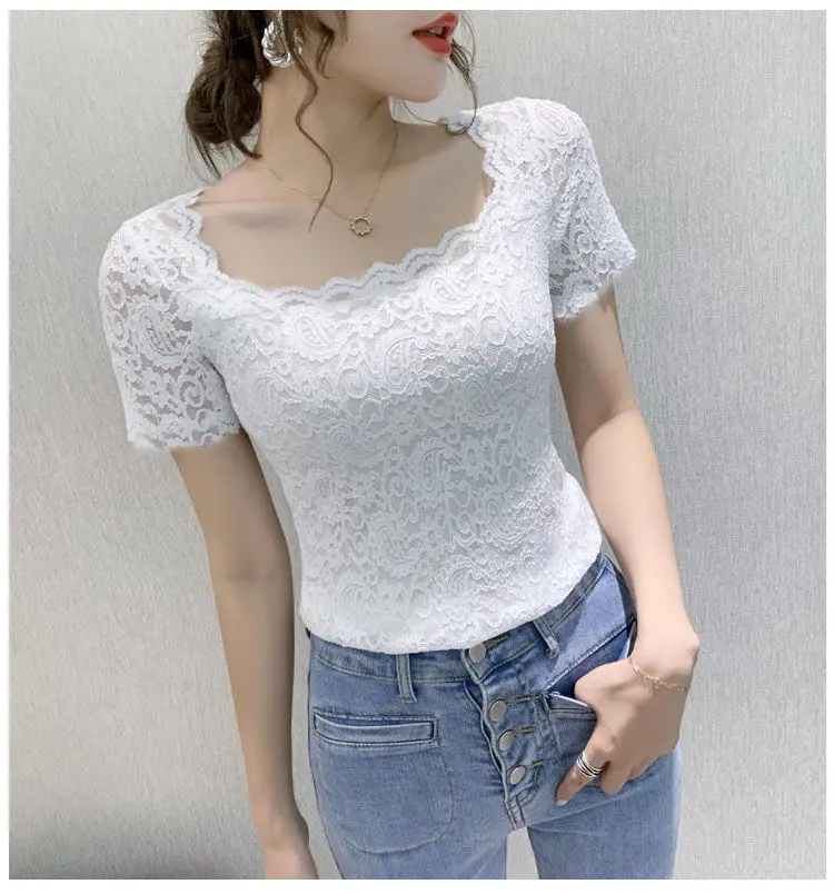 Хлопковая футболка, женская, 2021, модная, летняя, размера плюс, кружевная, с вышивкой, тонкая, элегантная, базовая, 120