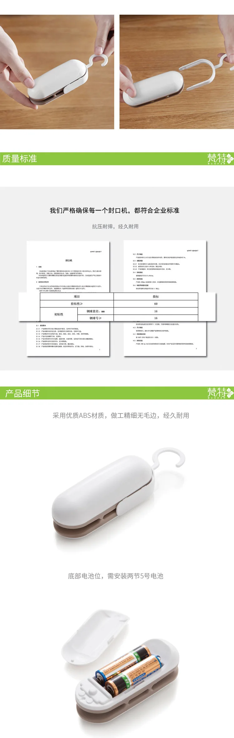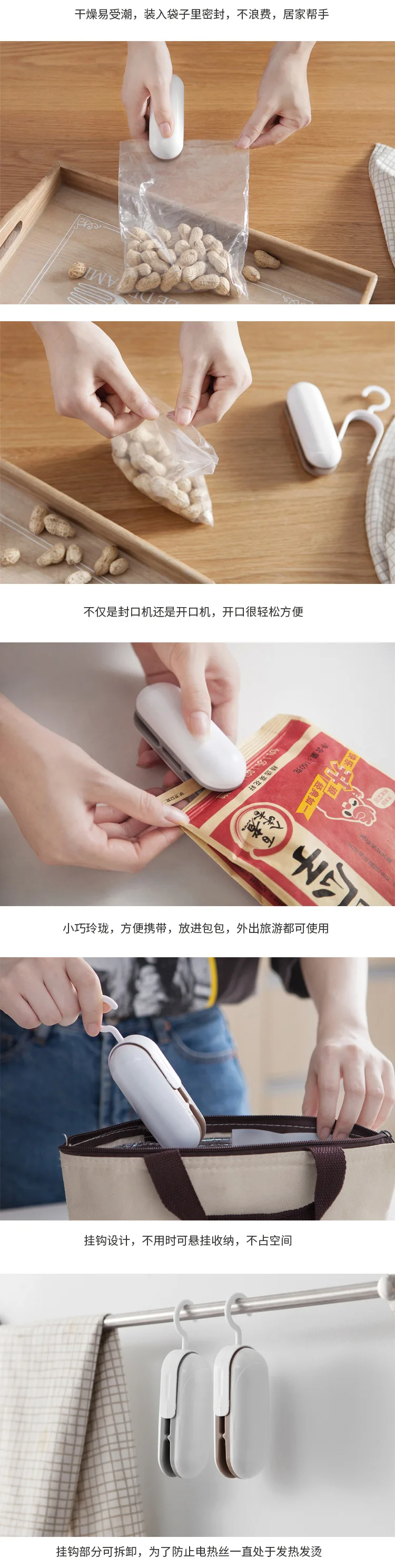 Портативный мини-мешок клип для герметизации пластиковых пакетов, запайки для хранения закусок и электрически нагреваемых продуктов питания, с крючком