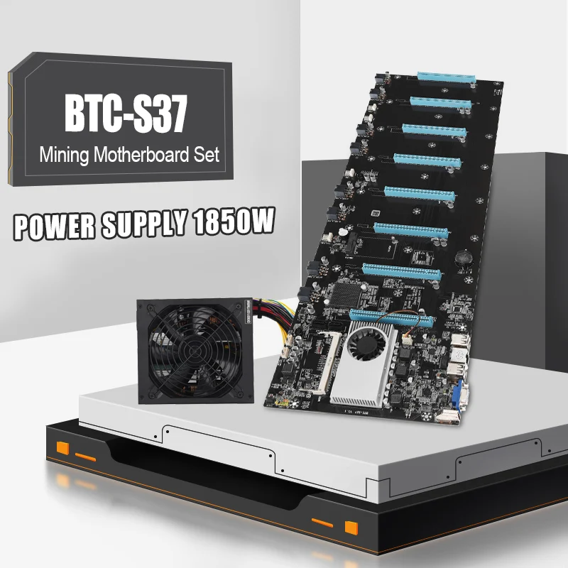 BTC-S37 Miner Mining материнская плата набор комбо с ATX источник питания 1850 Вт 8 PCIE 16X графическая карта Биткоин Crypto Etherum Mining