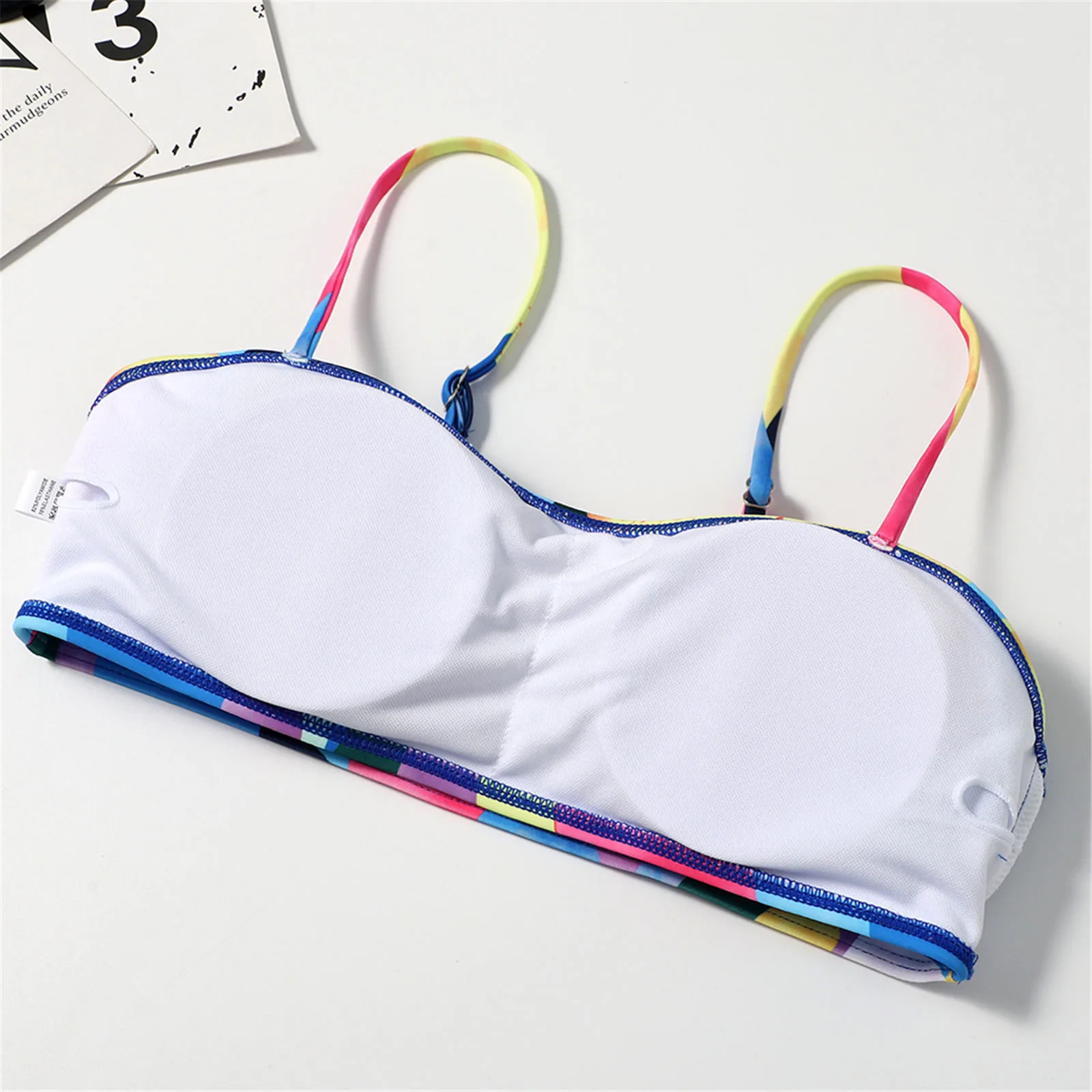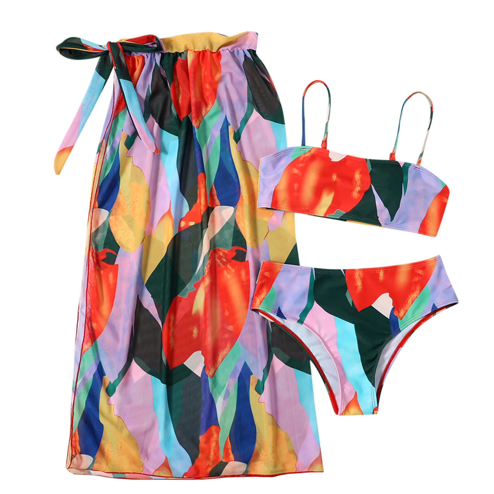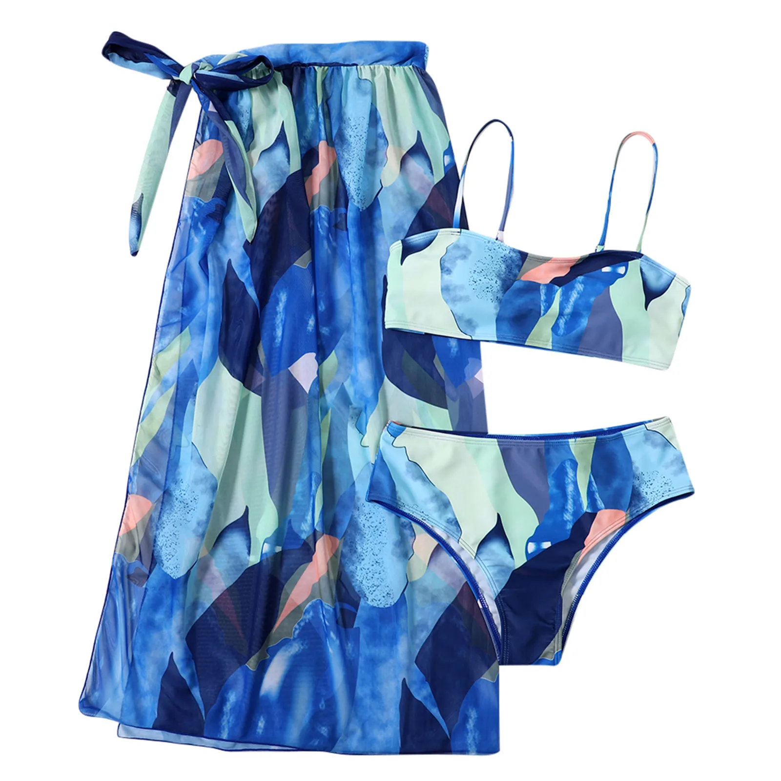 3 шт. Для женщин купальники, бикини, набор, пуш-ап Мягкий Топ со средней талией тай-дай на петельках с принтом бандажный купальник купальники сексуальный пляжный костюм 2021