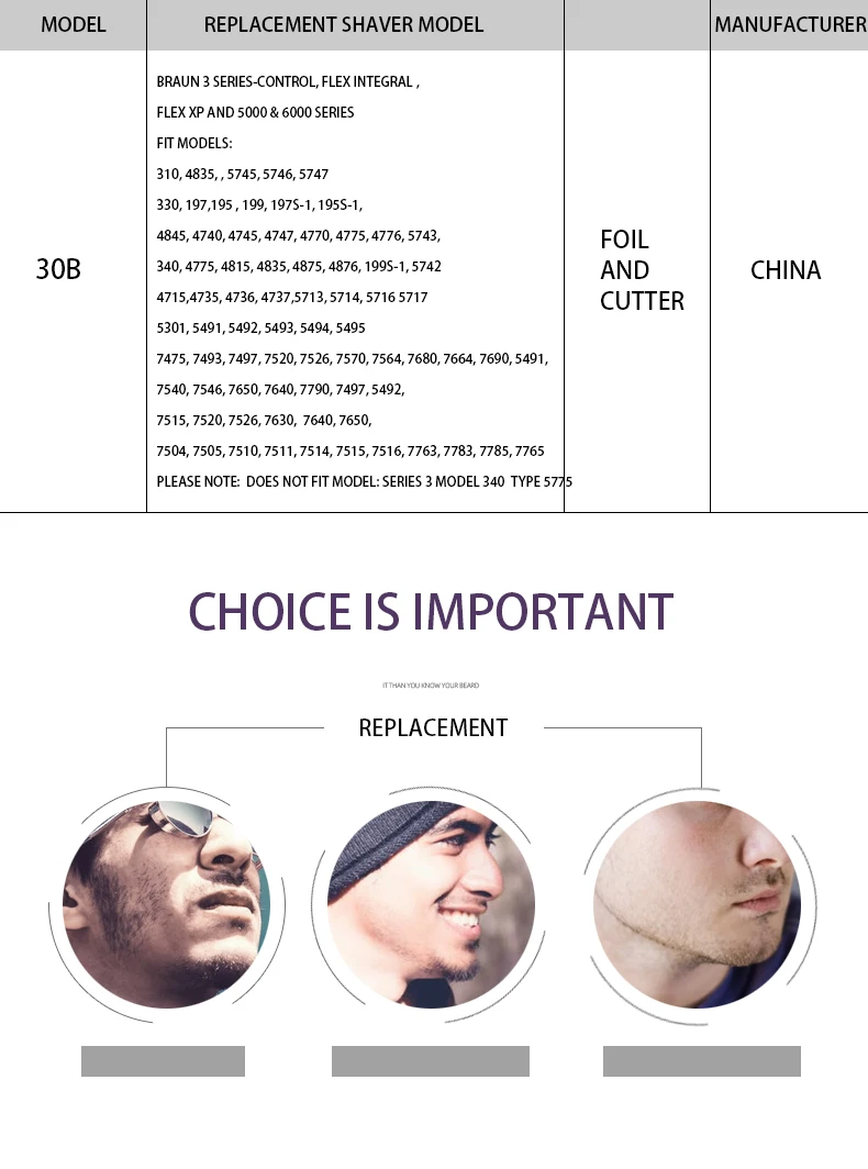 Бритва сменная 30B для BRAUN 330, 199, 197s-1, 195s-1, 4845, 7504, 7505, 7510, 7511, 7514, 7515, 7516, 7763, 7783, 7785