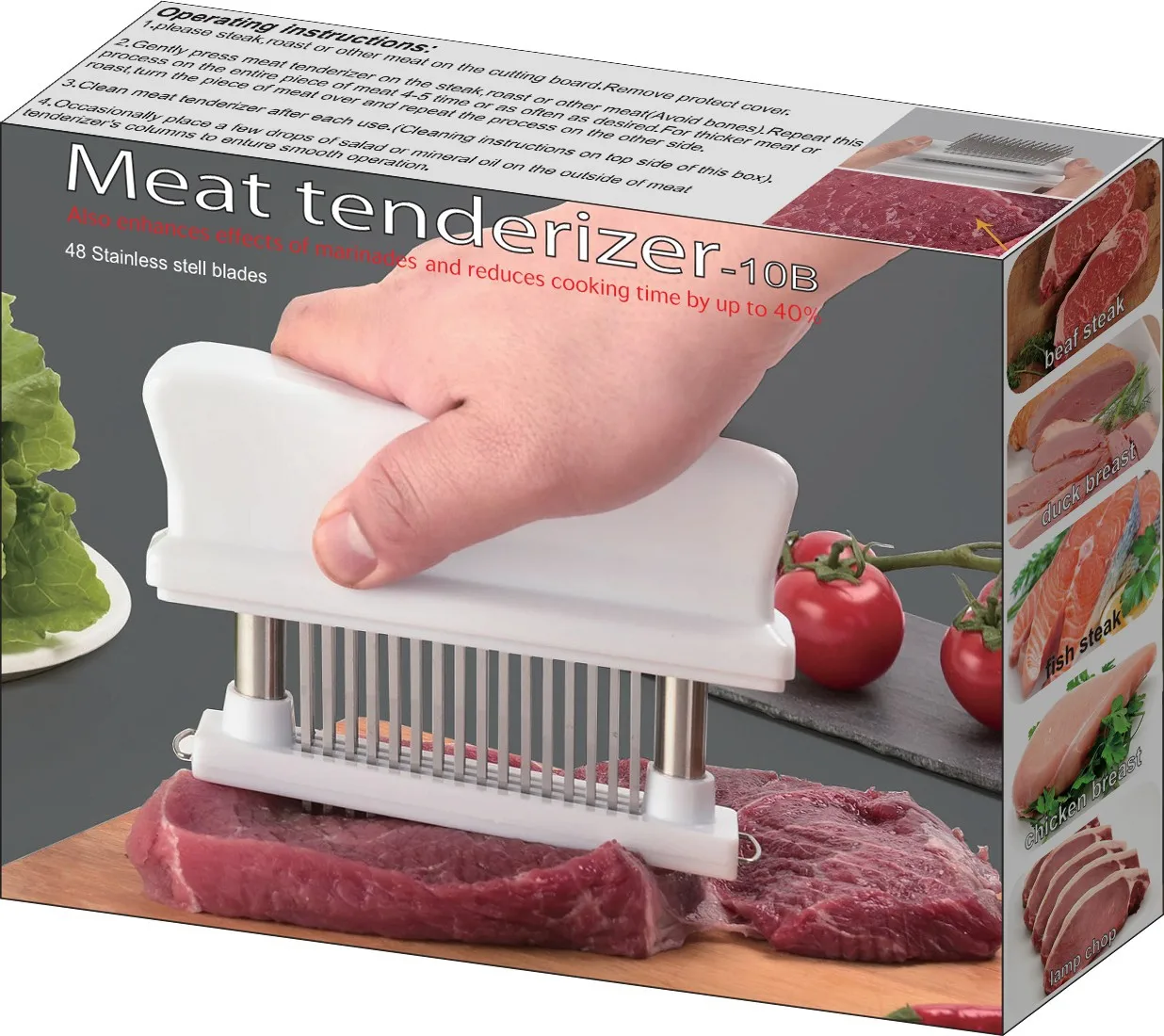 Это сложный мясной тендеризатор, который будет растягивать, сокращать время приготовления до 40%, и сделать маринад легко проникать, все из которых достигли необыкновенных результатов. Не нужно молотить и разбивать, готовка никогда не была лучше! Высококачественные кухонные инструменты-лучшее оборудование для приготовления суккулентного и нежного мясаТак что вы можете наслаждаться вкусными аппетитными деликатесами за очень небольшие деньги. Всего за несколько секунд, он идеально подходит для всех срезов мяса-Ультра-острый лезвие из нержавеющей стали проникает самые жесткие кусочки мяса, сохраняя вкус и удовольствие для вас и всех гостей каждый раз!Безопасный и простой в использовании-прочное оборудование изготовлено из пищевого АБС-пластика и 48 лезвий из нержавеющей стали, изготовлено по очень высоким стандартам, благодаря проектированному пружинному устройству, которое позволяет легко отнимать лезвия в безопасное положение, чистить и удобно, он имеет эргономичную форму, которая может удобно держать вашу руку, Просто нажмите на устройство, чтобы использовать, супер острое лезвие.Легко чистить и снимать. Его можно промыть водой, или лезвие можно легко очистить с помощью кисти.Примечание: При использовании этого изделия не кладите руки на лезвие.Из-за ручного измерения, пожалуйста, учитывайте зазор в 1 см, и цвет зависит от фактического продукта, спасибо!