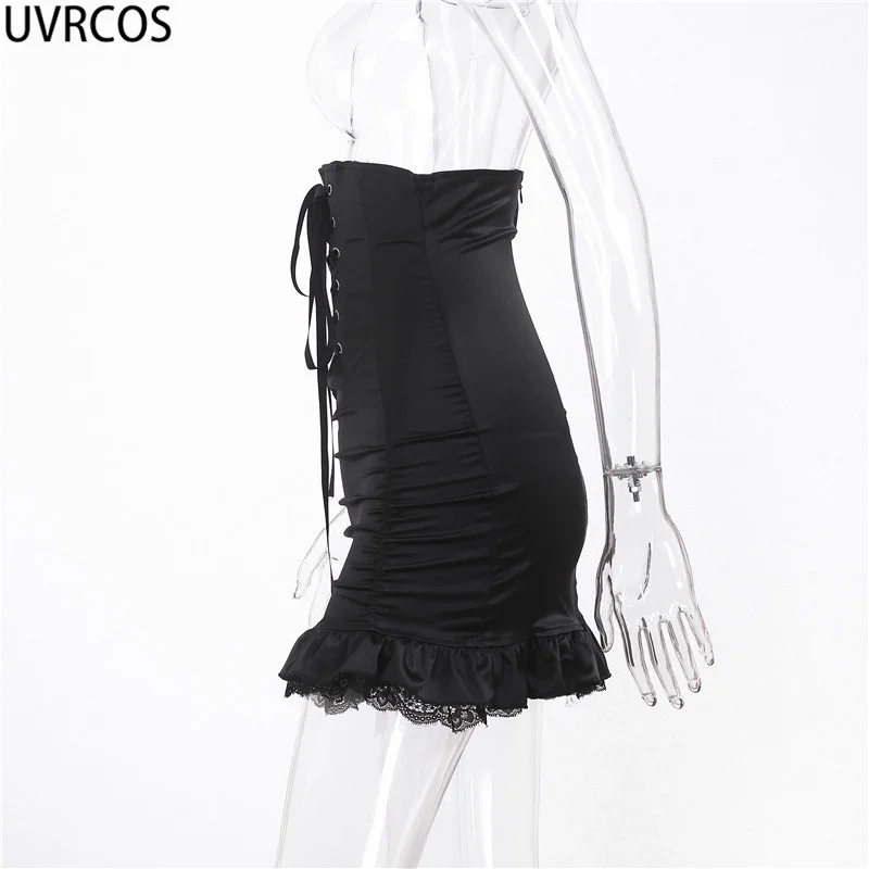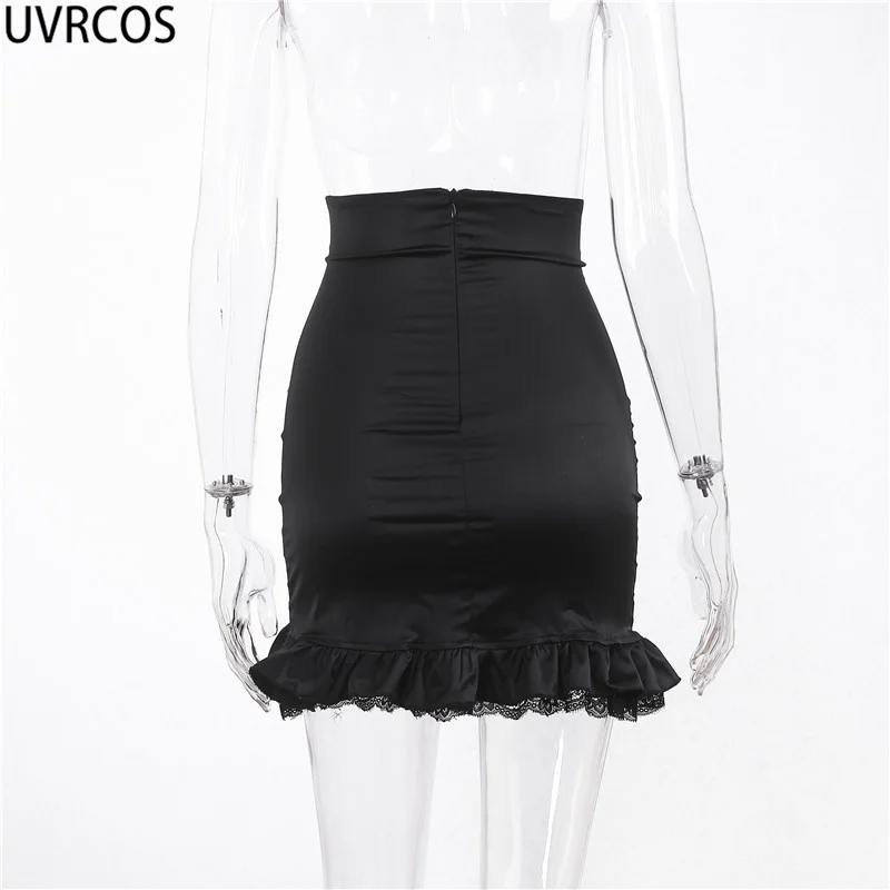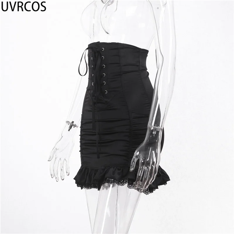 Женская кружевная юбка с высокой талией UVRCOS, черная короткая юбка в готическом стиле с завышенной талией и складками, лето 2019