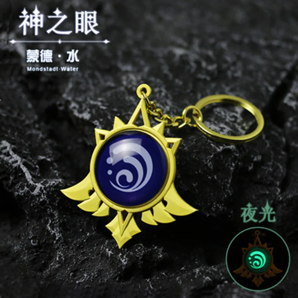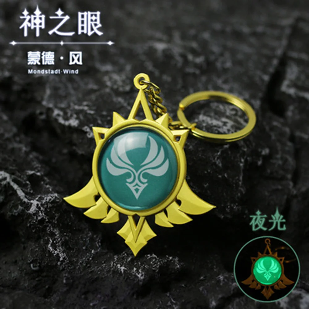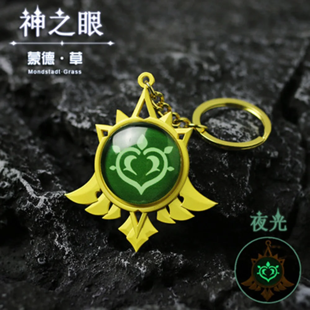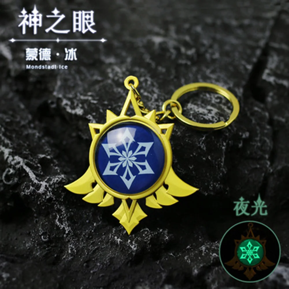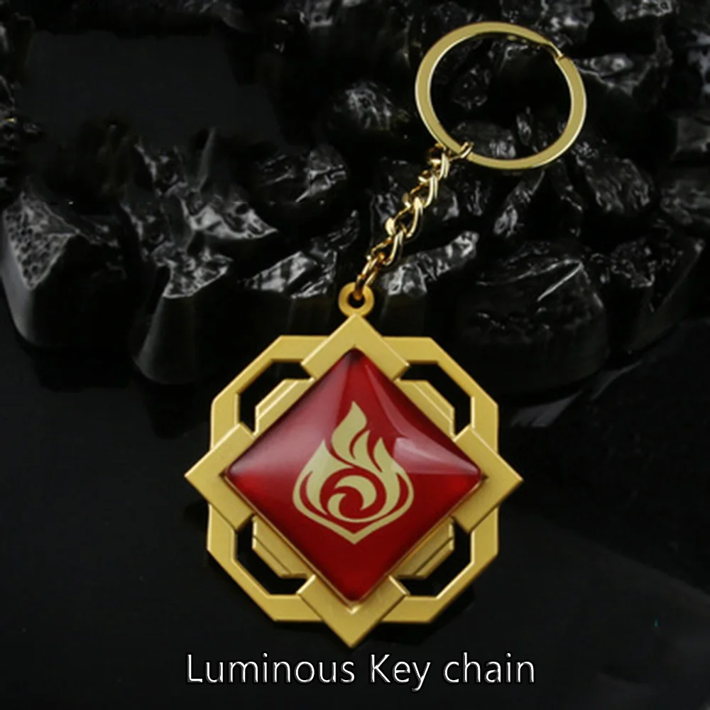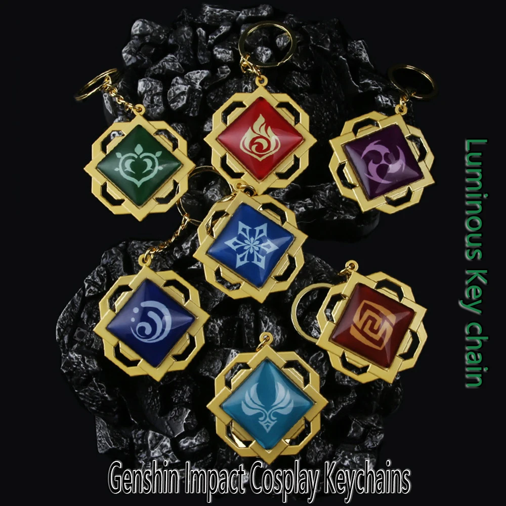 Светящийся брелок для ключей для игр, металлические брелки для косплея Genshin Impact, 7 элементов, оружие, глаз Бога, аксессуары, детские игрушки, подарки