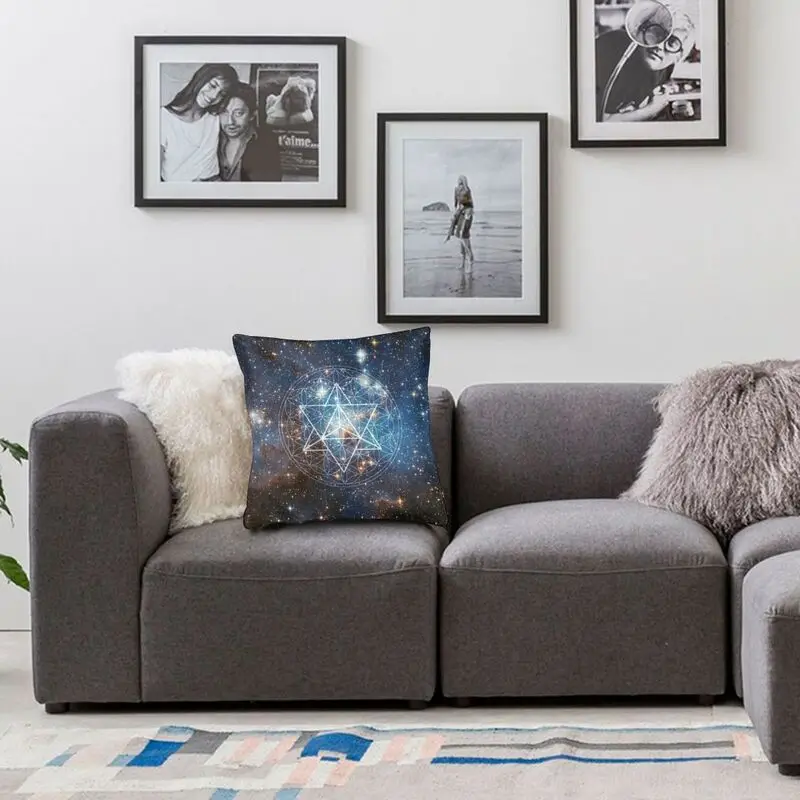 Metatron's Cube с Merkabah и цветочным рисунком жизни Подушка Чехол...