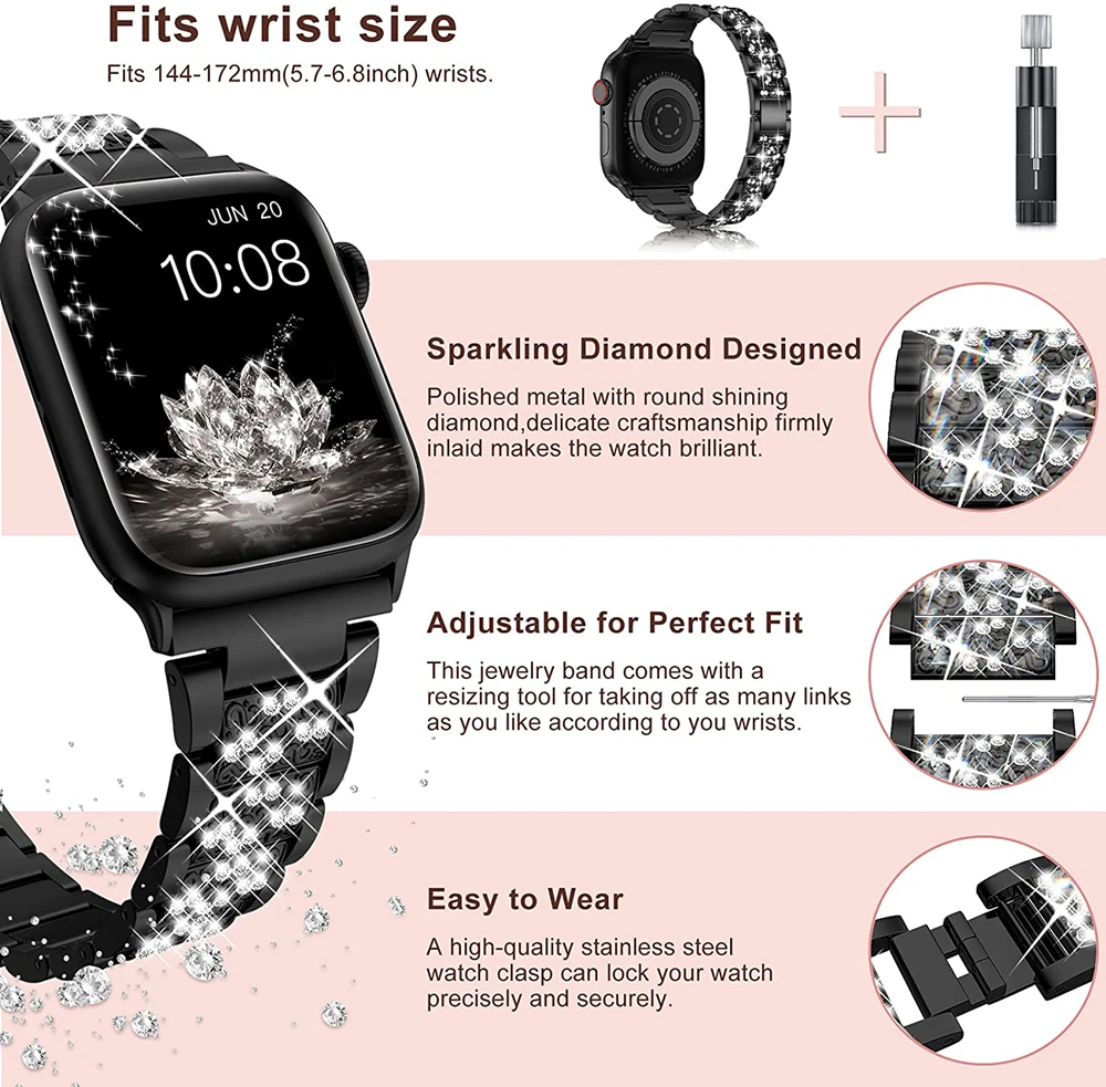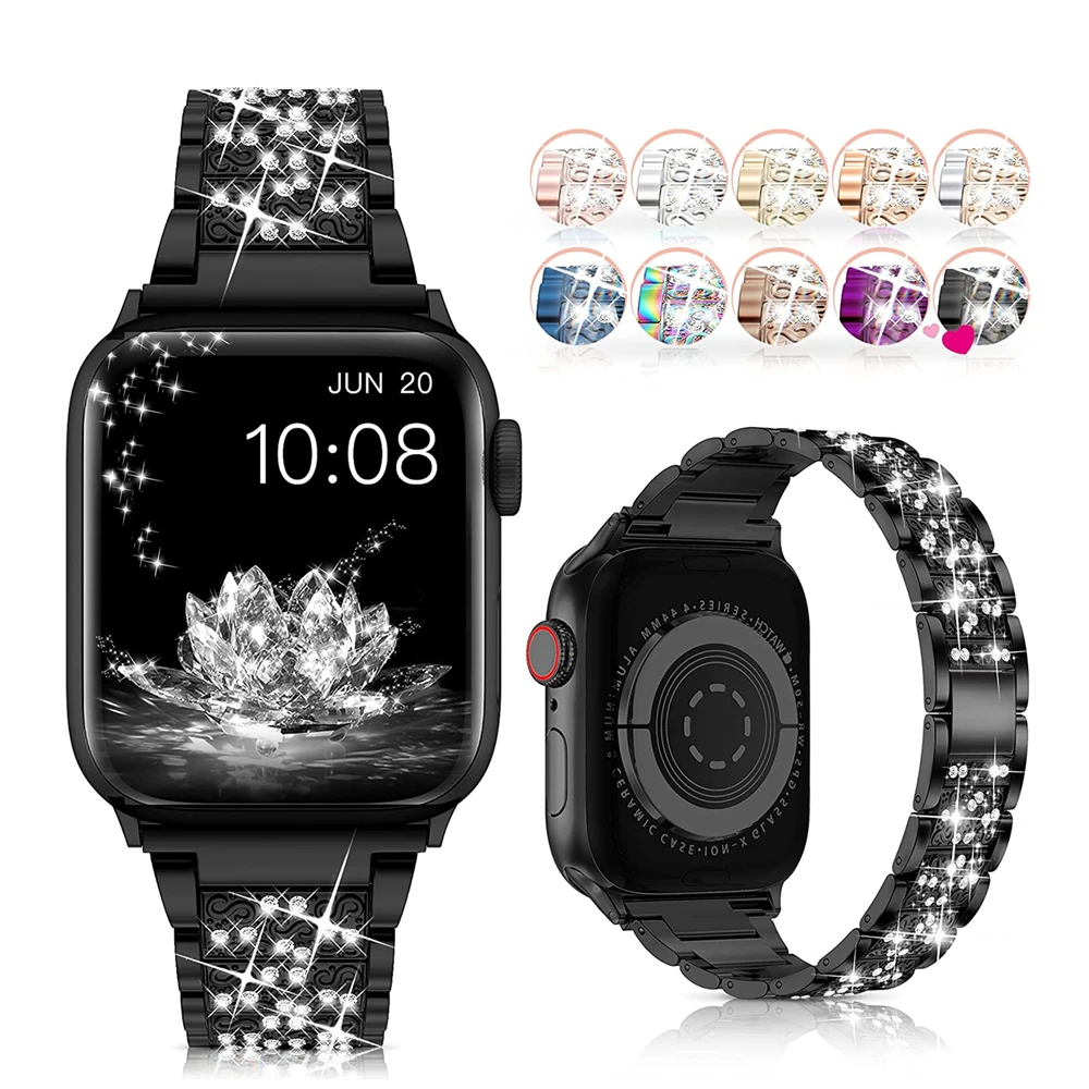 Ремешок для наручных часов Apple Watch со стразами Стразы браслет из нержавеющей стали ремешок 38 мм 40 мм 42 44 мм браслет наручных часов iWatch, SE, 6, 5, 4, 3, 2, 1 полос