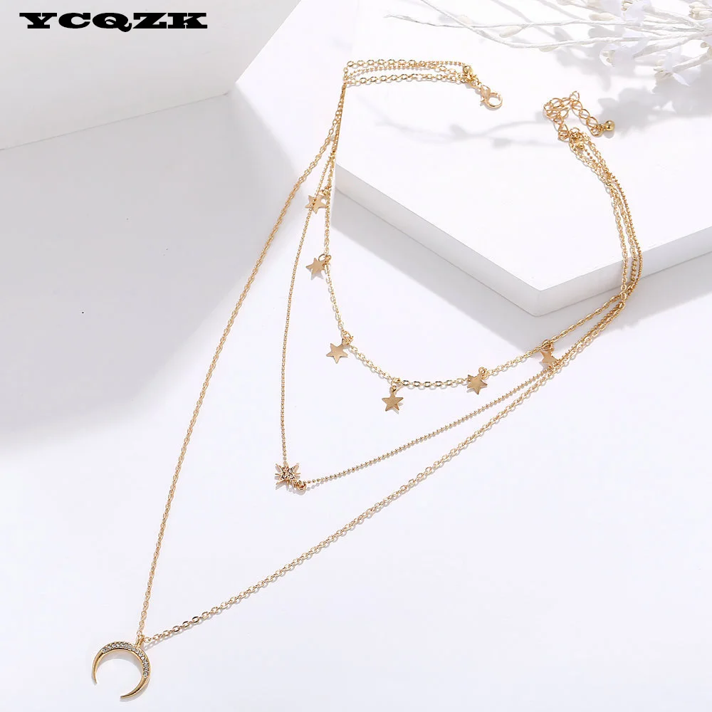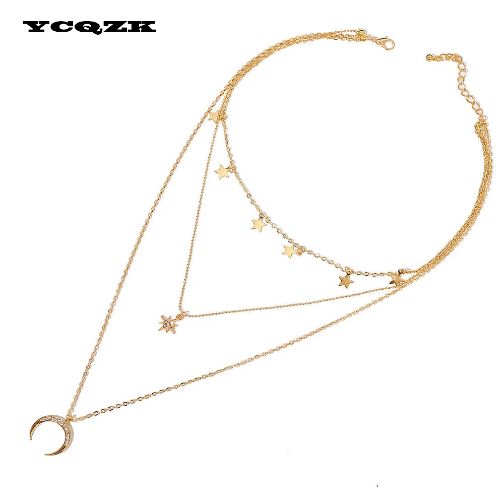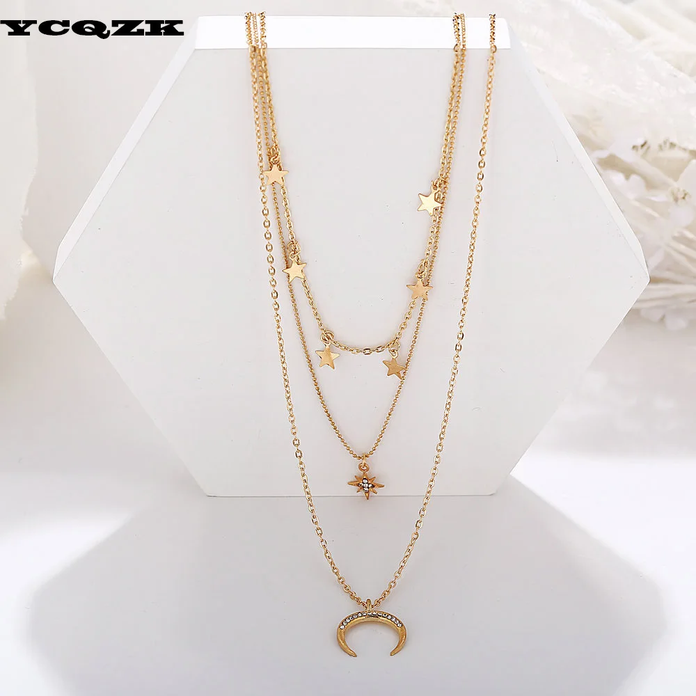 Новое ювелирное изделие для девочек, цепочка, ожерелье в стиле бохо золотого цвета, подвеска в виде звезды, многослойное ожерелье, подвеска на свитер, Очаровательное ожерелье, 2021