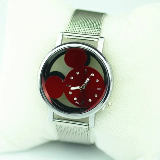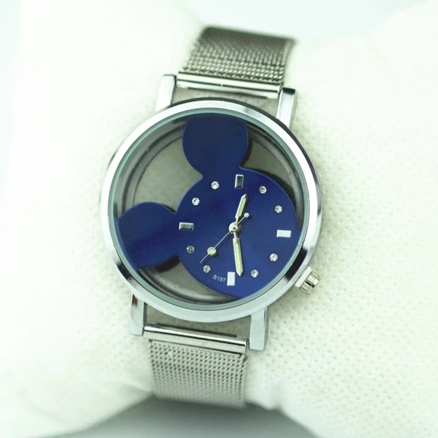 Модные детские часы с изображением Микки Мауса, прозрачные полые женские часы, кварцевые наручные часы из нержавеющей стали, женские часы