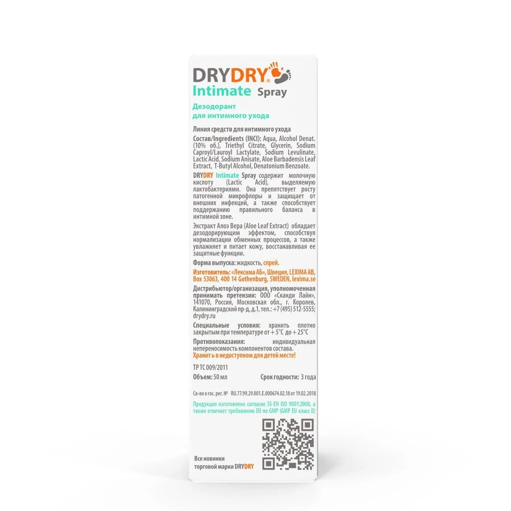 Дезодорант Dry Dry Intimate Spray, спрей для интимного ухода, универсальный, 50 мл.