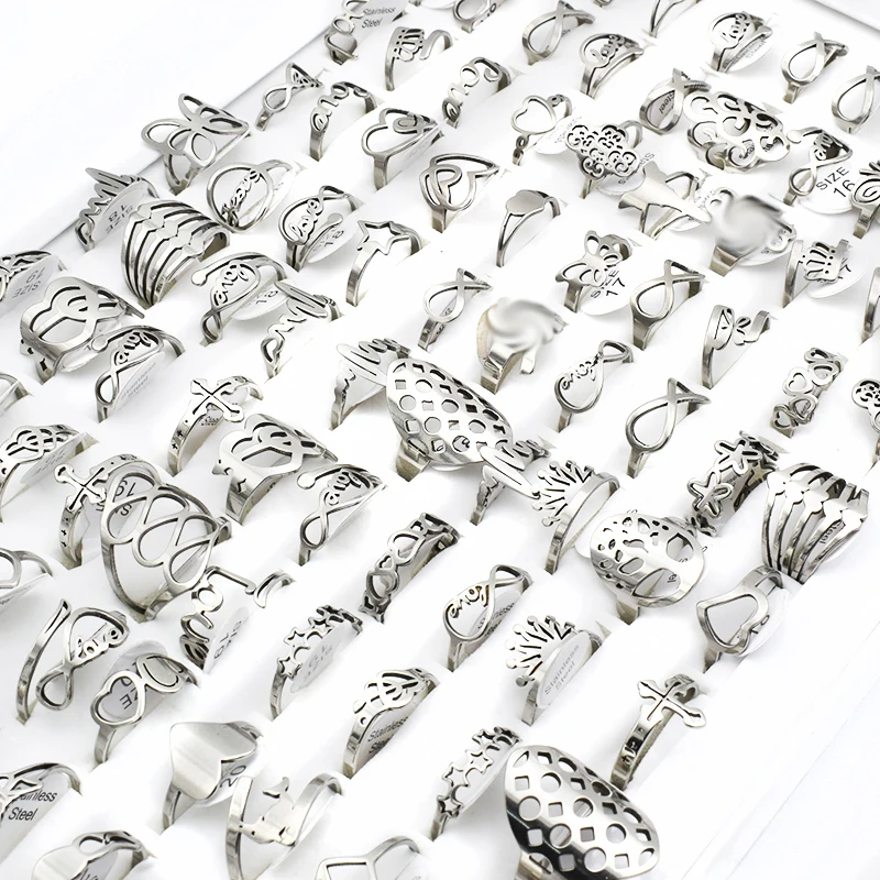 50 шт.лот кольца из нержавеющей стали с бантом-бабочкой в форме сердца и надписью для женщин микс милых свадебных модных ювелирных изделий оптовая продажа
