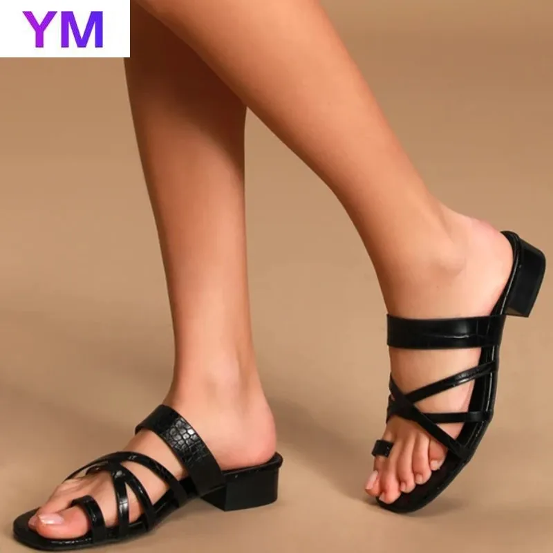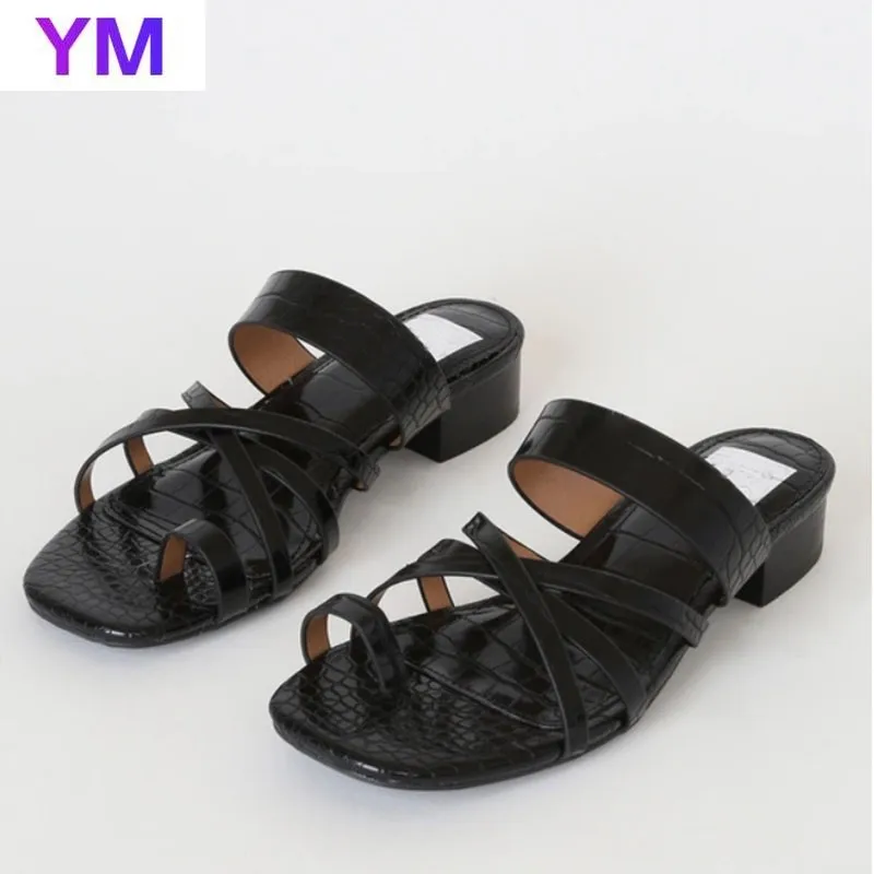 Черные, белые новые модные пикантные женские сандалии с квадратным ...