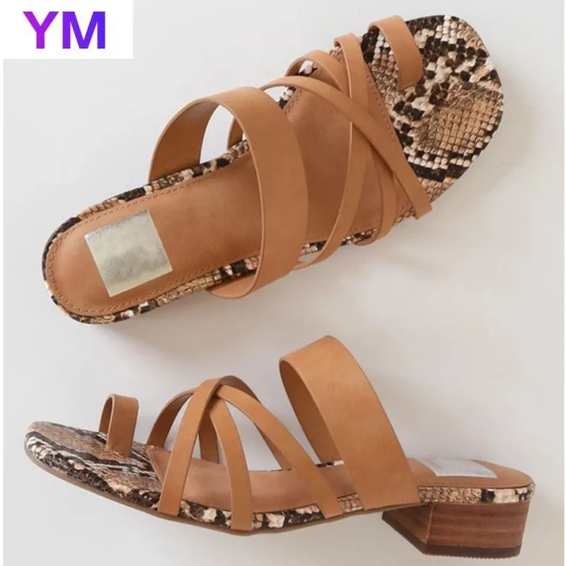Женские сандалии на высоком каблуке, туфли-мюли со змеиным принтом,...