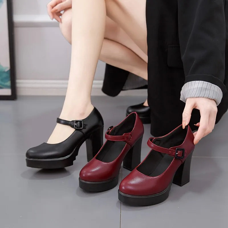 Туфли женские кожаные на высоком каблуке 8 см, с пряжкой, с круглым носком, размер 35-41