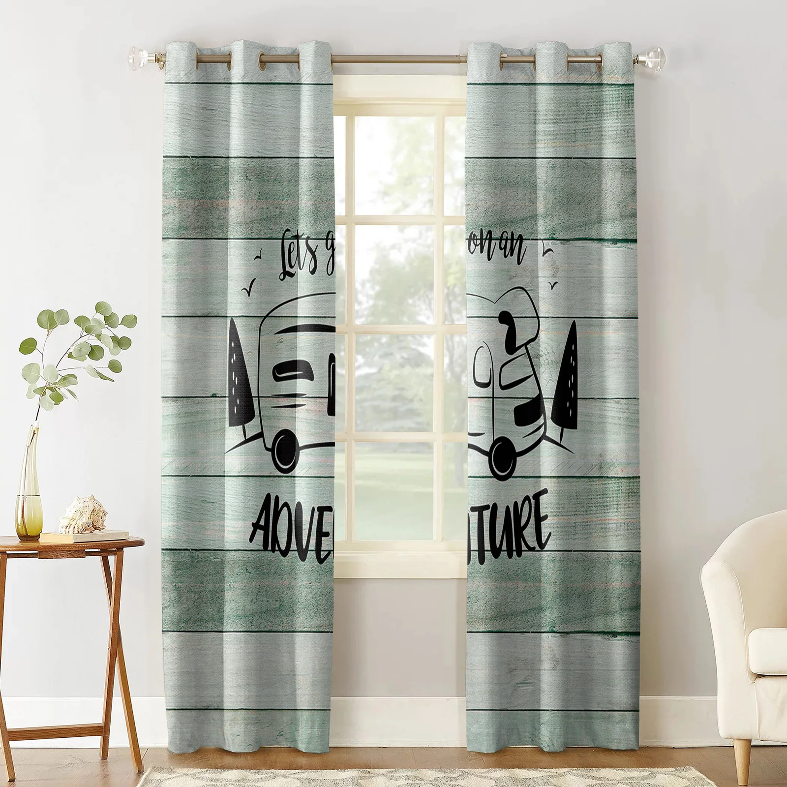 Светонепроницаемые шторы в стиле ретро, зернистое зеленое дерево, для жилого фургона, занавески для гостиной, спальни, украшение для дома