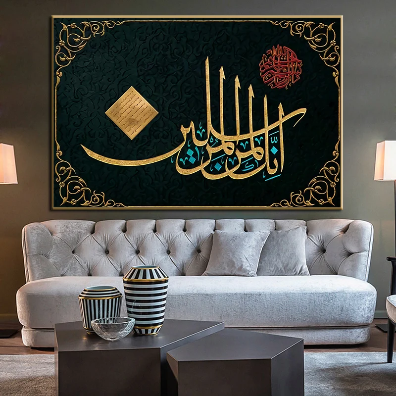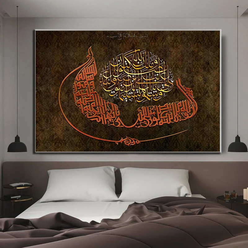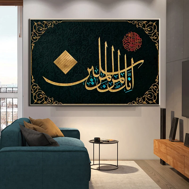 Ретро мусульманская картина холст с каллиграфией настенная живопись религиозные стихи Коран исламский арабский каллиграфические плакаты принты мечеть Декор