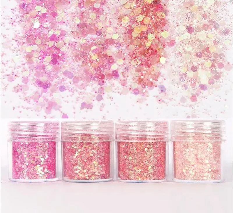 Набор из 4 крупных розовых серии блесток для ногтей Пудра с блестками для украшения ногтей градиентный набор ультратонкие Блестки для ногтей