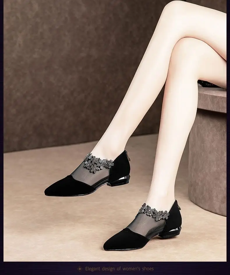 Женские сетчатые лоферы на плоской подошве, с острым носком