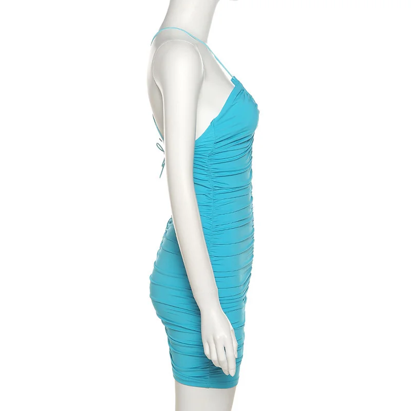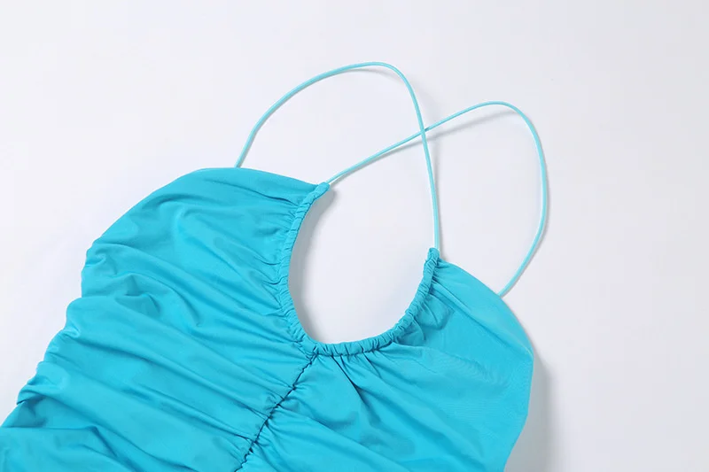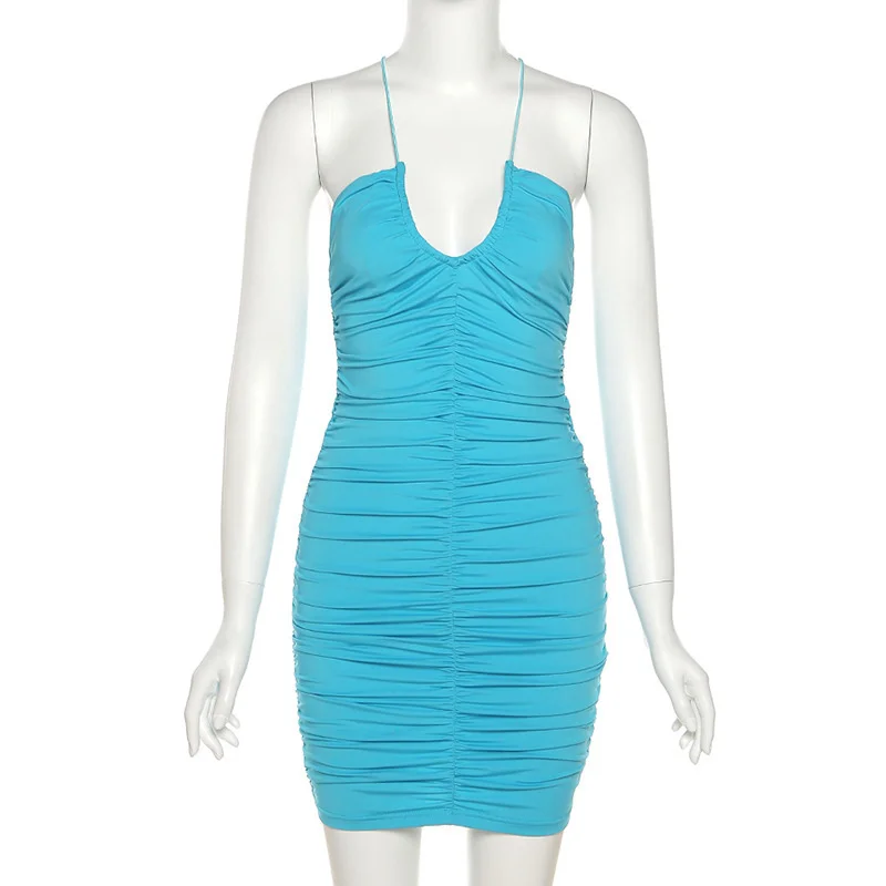 Женское облегающее платье SRUBY, элегантный эластичный вечерний сарафан с рюшами, лямкой через шею, без бретелек, облегающее платье бодикон без рукавов, на лето