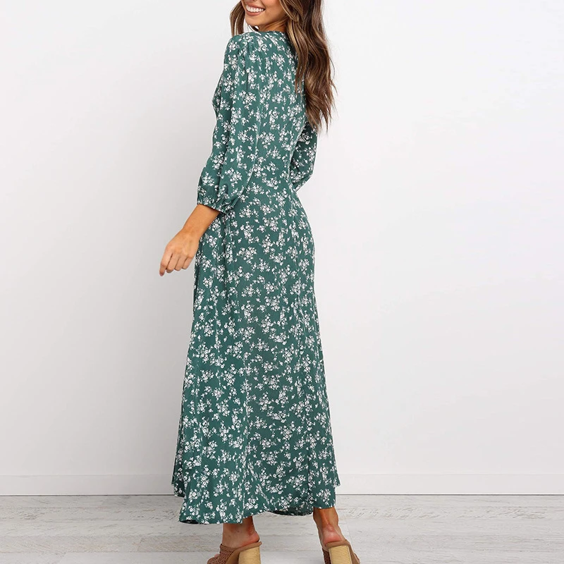 Платье женское с цветочным принтом, богемный длинный сарафан с длинным рукавом-фонариком, лето 2021