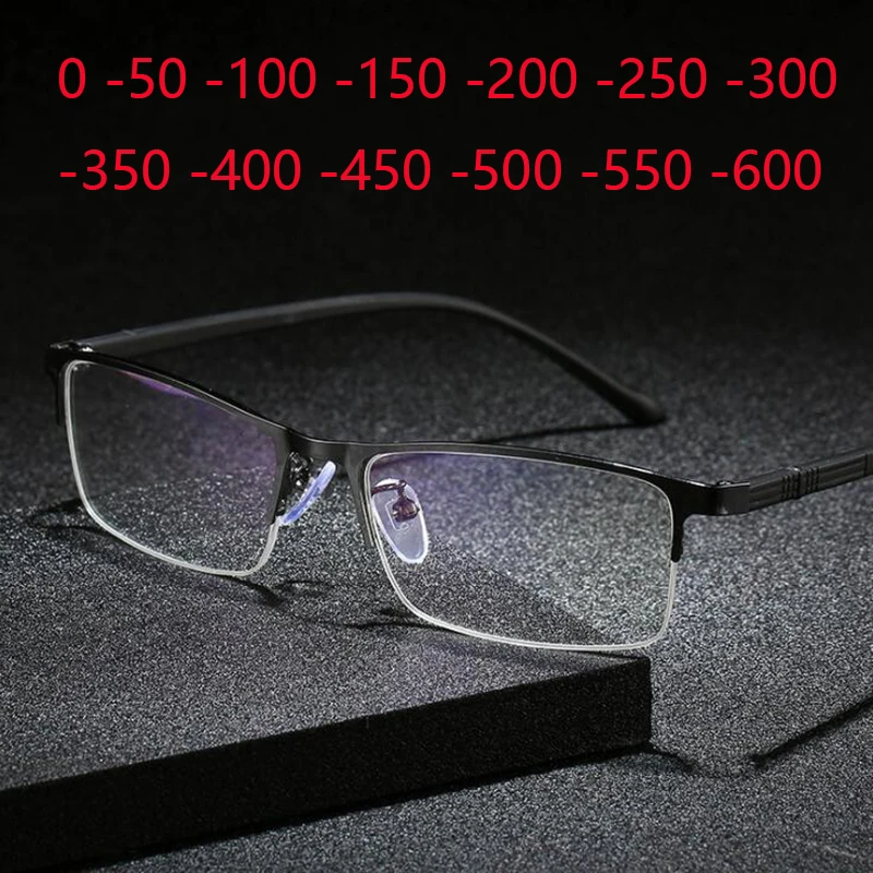 Очки для близорукости для мужчин и женщин, Квадратные прозрачные зеркальные линзы с полуоправой для коррекции близорукости, от 0-0,5-1,0-1,5 до-6,0