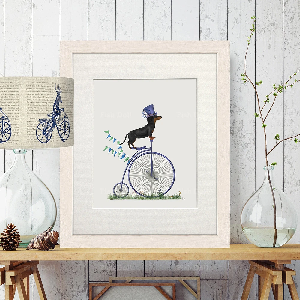 Скандинавский мультфильм Животные Печать холст Картина велосипед со...